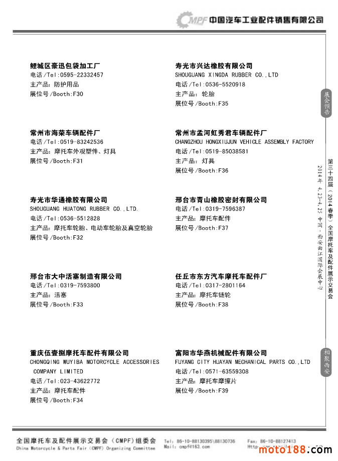 第33屆秋季(南京)全國摩托車及配件展示交易會(huì)參展企業(yè)名錄