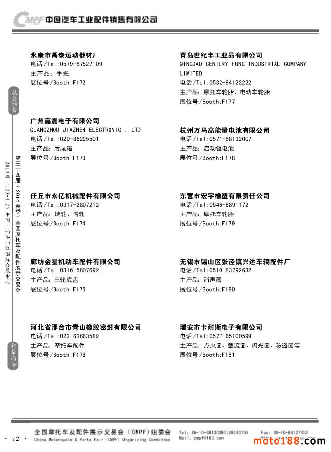 第33屆秋季(南京)全國摩托車及配件展示交易會參展企業名錄