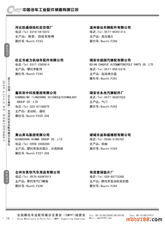 第33屆秋季(南京)全國摩托車及配件展示交易會參展企業名錄