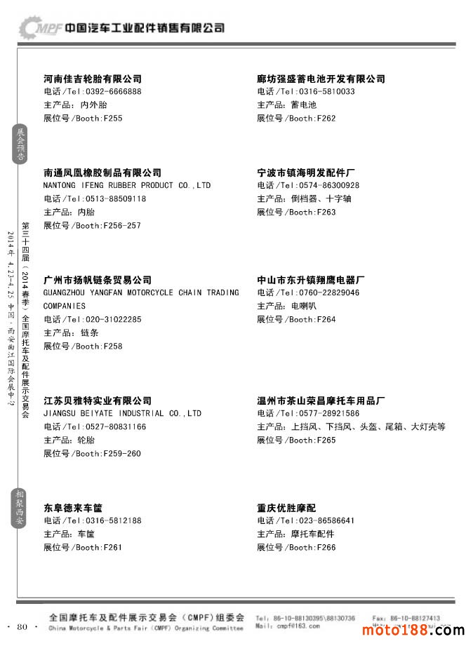 第33屆秋季(南京)全國摩托車及配件展示交易會參展企業名錄