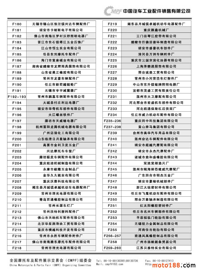 第33屆秋季(南京)全國摩托車及配件展示交易會參展單位名錄
