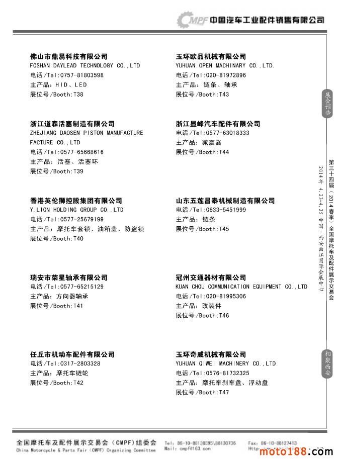第33屆秋季(南京)全國摩托車及配件展示交易會參展企業(yè)名錄