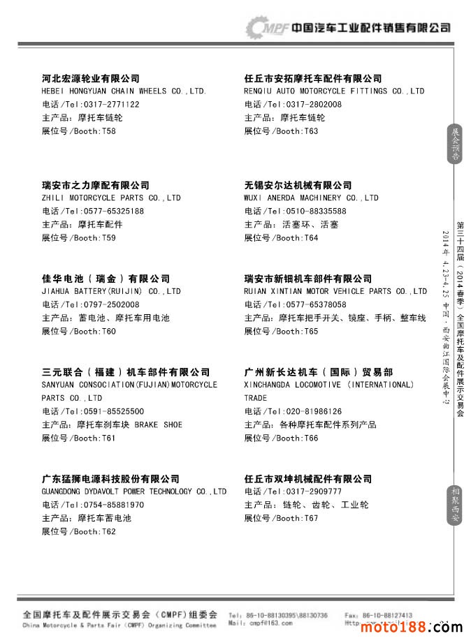 第33屆秋季(南京)全國摩托車及配件展示交易會參展企業名錄