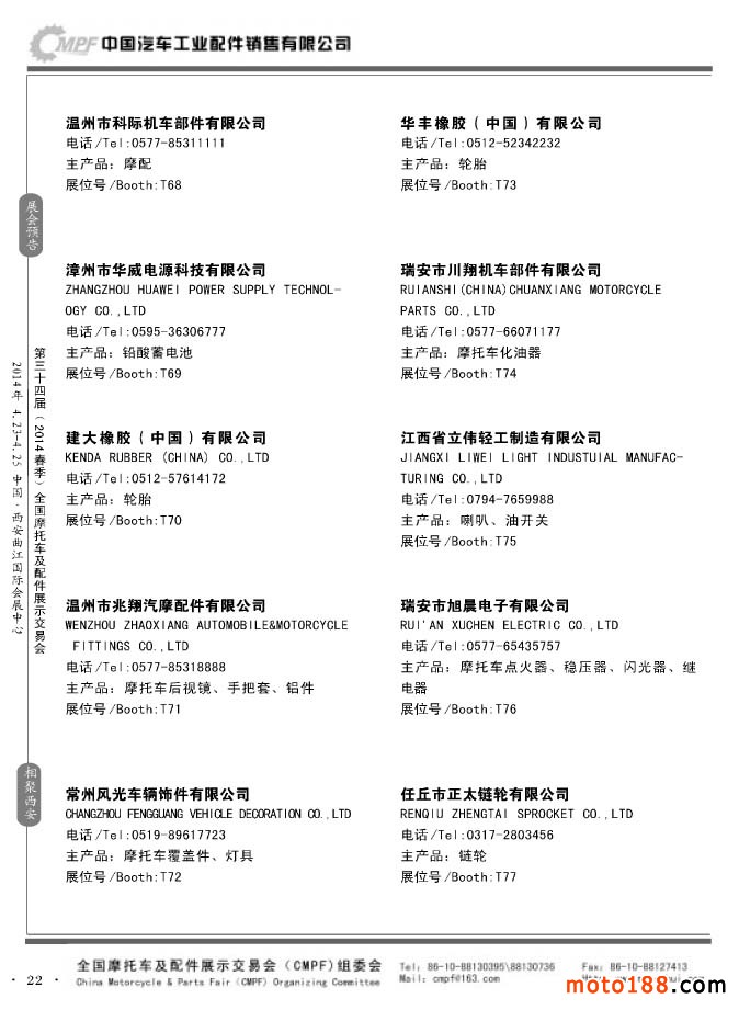 第33屆秋季(南京)全國摩托車及配件展示交易會參展企業名錄