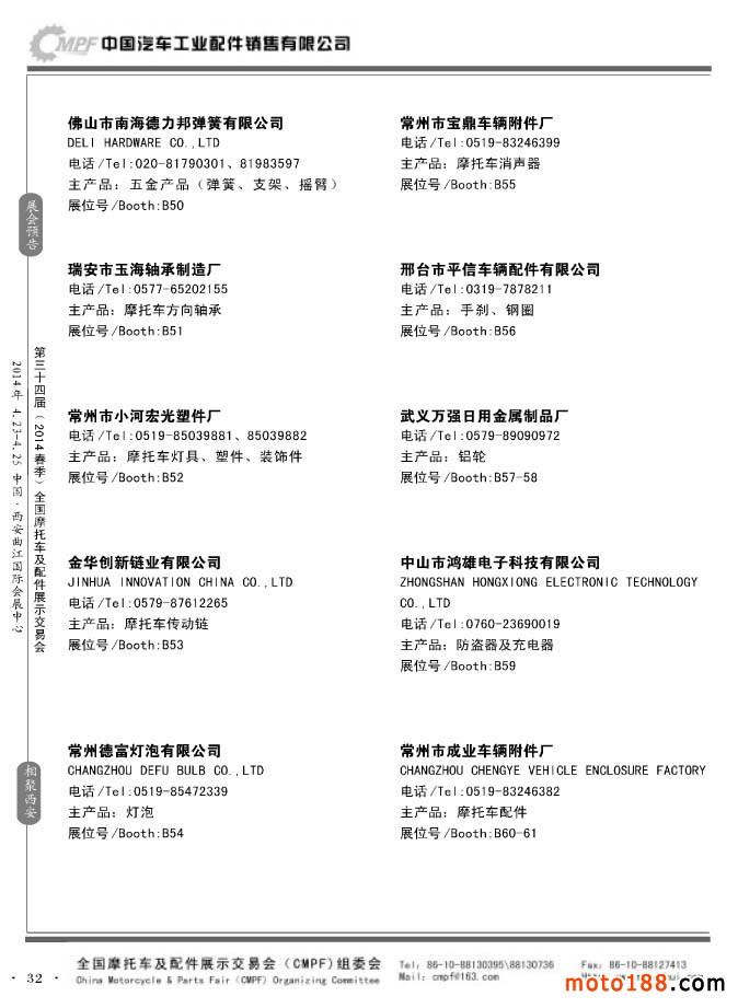 第33屆秋季(南京)全國摩托車及配件展示交易會參展企業(yè)名錄