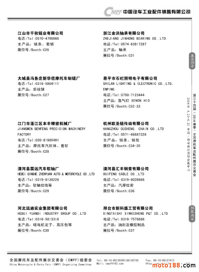 第33屆秋季(南京)全國摩托車及配件展示交易會參展企業名錄