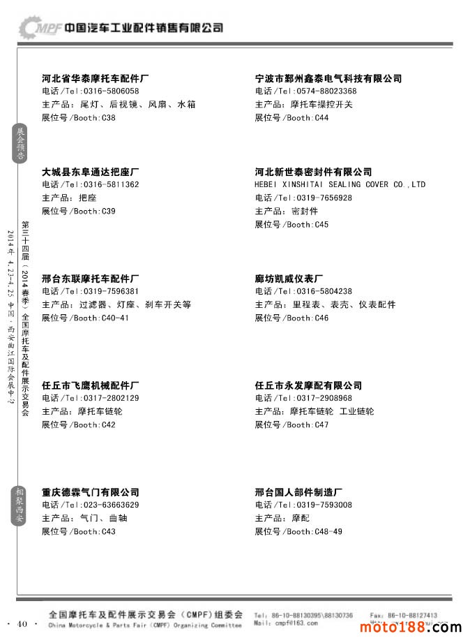 第33屆秋季(南京)全國摩托車及配件展示交易會參展企業名錄