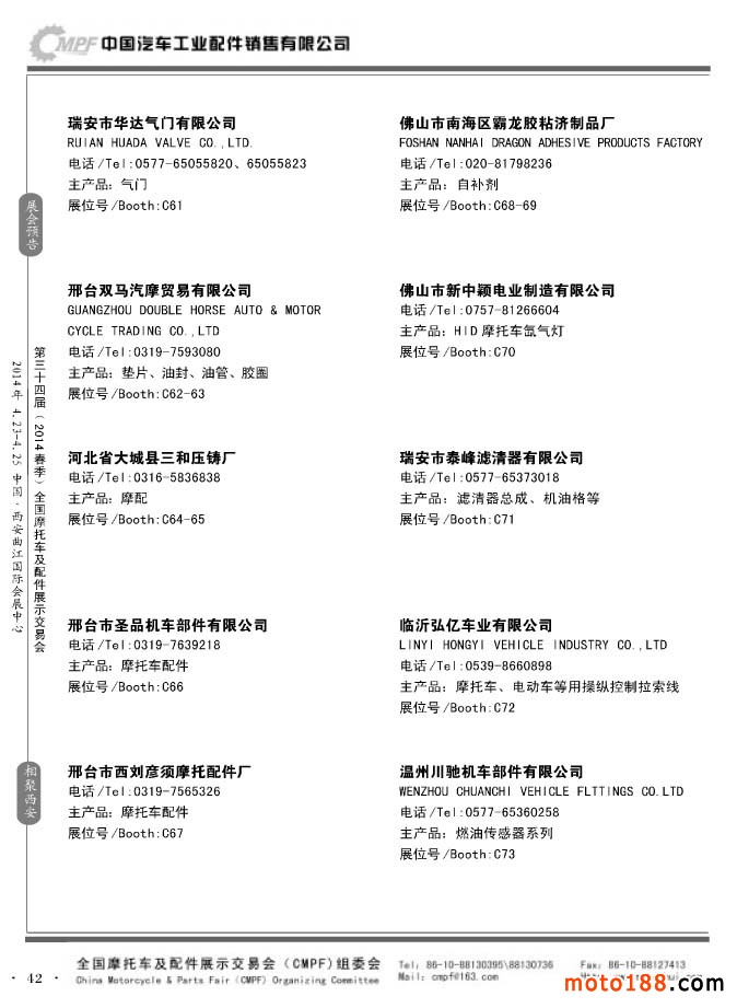第33屆秋季(南京)全國摩托車及配件展示交易會參展企業名錄