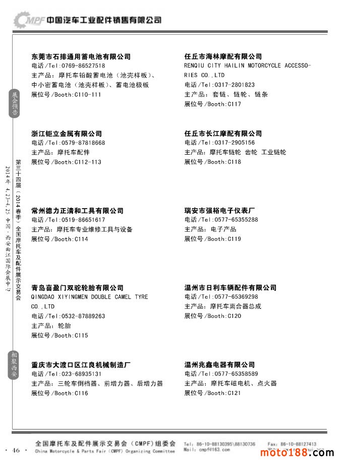 第33屆秋季(南京)全國摩托車及配件展示交易會參展企業名錄