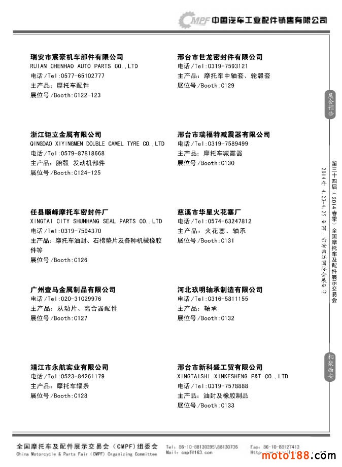 第33屆秋季(南京)全國(guó)摩托車及配件展示交易會(huì)參展企業(yè)名錄