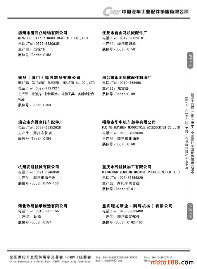 第33屆秋季(南京)全國摩托車及配件展示交易會參展企業名錄