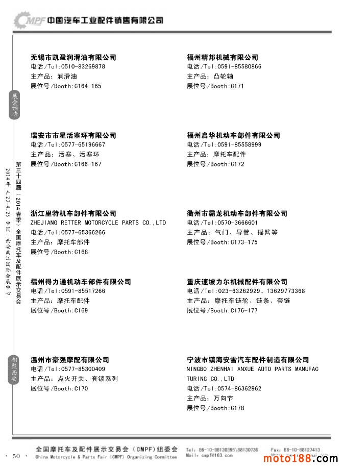 第33屆秋季(南京)全國摩托車及配件展示交易會參展企業名錄