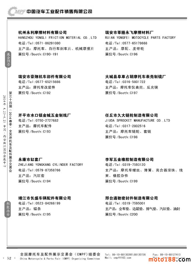 第33屆秋季(南京)全國摩托車及配件展示交易會參展企業名錄