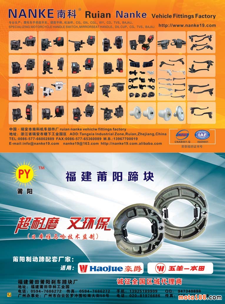 隨著全摩會的閉幕,今年的配件行業經營也進入到收宮階段,北方的天氣也漸漸轉冷,北方的市場也逐步趨淡。今年的市場銷售整體都不太好,無論是外貿還是內銷市場,我們雜志在今年也很努力,但是也能明顯地感覺到市場的寒意。盡管如此,我們仍然取得了較好的成績:我們對華東市場進行了精耕細作,走訪了市場的每一個客戶,搜集更新了市場的資料,并在南京秋摩會和重慶摩博會上將華東市場的第一手資料送給了企業;同時,在廣州市場也更新了最新的市場資料,并在秋摩會將這本資料送給了行業同仁。
