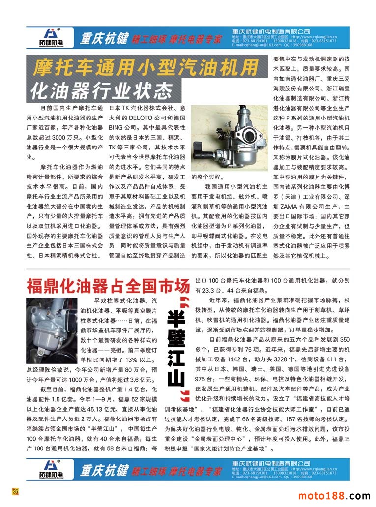 內36 摩托車通用小型汽油機用化油器行業狀態/福鼎化油器占全國市場“半壁江山”(文)