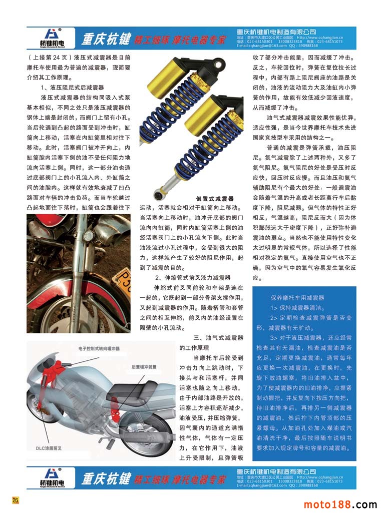 和這些歷經(jīng)風(fēng)雨在摩配行業(yè)堅(jiān)守的同仁們一樣,我們也煉得自信與從容。新的一年我們雜志以全新的面貌出現(xiàn),我們采用全彩色出刊,同時(shí)將我們的服務(wù)對(duì)象橫向延伸。與我們的同仁一樣,立足摩配,橫向拓展,內(nèi)外兼修,努力做好雜志,除了提升外觀品相,更是注重在內(nèi)容上的變化。每期雜志用十頁左右的文字來廣角掃描我們摩托車配件行業(yè)的子行業(yè),這一期推出的是減震器專題。上一期化油器專題出刊以后,不光受到市場(chǎng)的歡迎,有些企業(yè)還把我們的雜志認(rèn)真地收藏保存好,因?yàn)橛胁簧傩畔?duì)于他們的生產(chǎn)、經(jīng)營(yíng)都有一定幫助。對(duì)我們來說也是迫使我們更深入地了解摩配的各個(gè)子行業(yè)。自從前年摩托車行業(yè)開始強(qiáng)制提高排放標(biāo)準(zhǔn)以后,我們片面地認(rèn)為化油器這個(gè)行業(yè)會(huì)被電噴完全取代,這個(gè)產(chǎn)業(yè)是不是已經(jīng)步入到夕陽期?通過編排我們較深刻的對(duì)這一產(chǎn)業(yè)有所了解,制造之地一派欣欣向榮的景象,在我們摩托車業(yè)需求量減少之時(shí),我們的制造廠已經(jīng)在通機(jī)領(lǐng)域干得風(fēng)生水起,有不少?gòu)S即使擴(kuò)大產(chǎn)能也供不應(yīng)求。當(dāng)?shù)氐胤秸矎倪@個(gè)產(chǎn)業(yè)得到許多實(shí)惠,一個(gè)雙贏的局面,這就是產(chǎn)業(yè)的正能量。其實(shí)市場(chǎng)如何變幻,總有一批做得好的龍頭企業(yè)在努力工作,打造自己的名牌,眼光不僅僅局限面前,更多地瞄準(zhǔn)了國(guó)際市場(chǎng)。中國(guó)制造能漂洋過海,被國(guó)外消費(fèi)者所接受,正是這樣一批行業(yè)精英為國(guó)家和民族在努力。