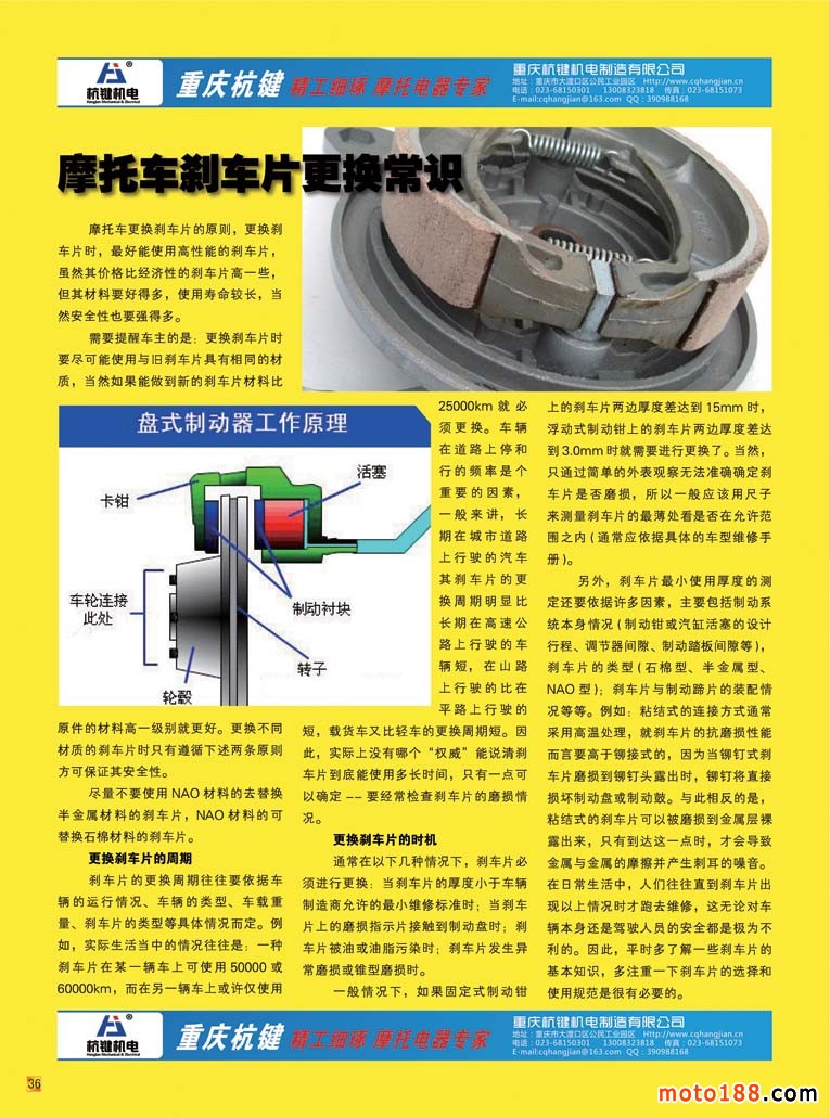 繼2013年12期開(kāi)始全彩色出刊,再加上每期一個(gè)專(zhuān)題的配件子行業(yè)的廣角介紹,我們積累了一定的經(jīng)驗(yàn),也有信心做好全部子行業(yè)的介紹。目前摩托車(chē)分為六大部件,每一大部件又細(xì)分為十幾二十幾不少的子部件,和摩托車(chē)有關(guān)的附件也可另算為一大類(lèi),因而我們要想全方位做完各個(gè)子行業(yè),就需要有幾年的時(shí)間。經(jīng)過(guò)這三期的編排,使我們進(jìn)一步加深對(duì)摩托車(chē)配件行業(yè)的了解,這一期剎車(chē)蹄塊我們本來(lái)認(rèn)為這個(gè)子行業(yè)報(bào)道的題材和內(nèi)容有限,但我們把資料匯總以后,原來(lái)這些行業(yè)也別有洞天,后來(lái)我們不得不壓縮了題材,精選了內(nèi)容,還是排了十幾張紙;再加上我們又涉及到三輪摩托車(chē)、電動(dòng)摩托車(chē),沒(méi)想到就連小型通機(jī)也要用蹄塊制動(dòng)。