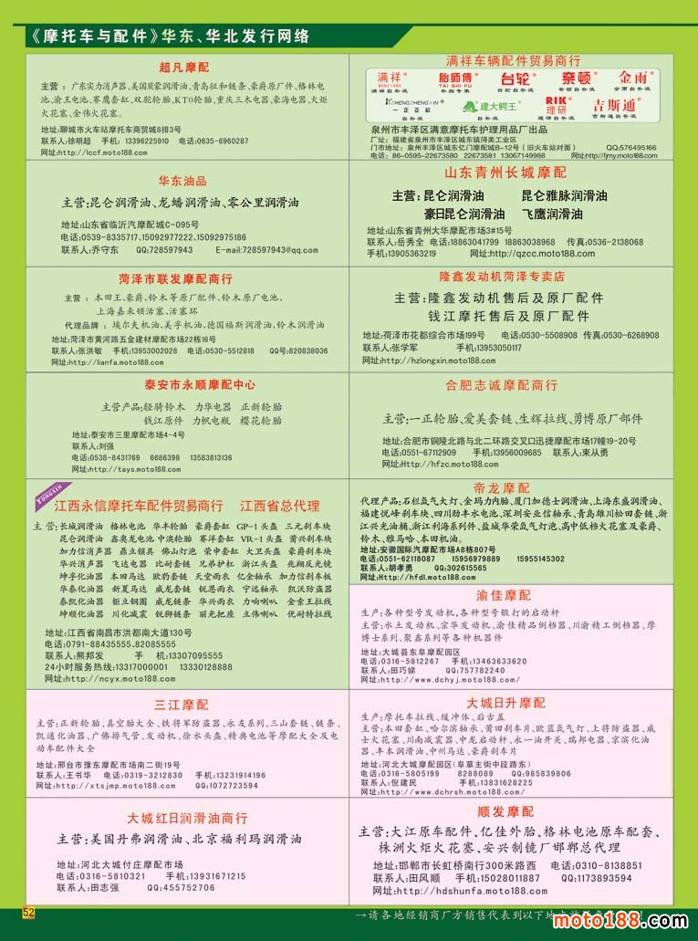 通過這一期的編排,我們又獲得了新的啟發:未來我們把摩托車部件所有子行業都進行廣角度、精細的系列專題報道,再把這些內容匯總起來,就是一本非常厚實的中國摩托車配件經營必備的技術和市場營銷的工具書,這個系列書籍我們在前年曾經想編撰的,但是感覺太龐雜,而且專業性太強,而心懷恐懼。今年通過我們三期的嘗試,我們的底氣越來越足了,我們通過每一期的努力,積少成多,聚沙成塔,水滴石穿,而功到自然成。