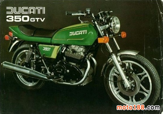 350GTV 生產年份1975-1976 引擎為空氣冷卻四沖程平行雙缸SOHC;排量348.9;壓縮比9.6:1;前剎車2*256毫米盤式;后剎車單257毫米盤式;整車質量183公斤;油箱14升