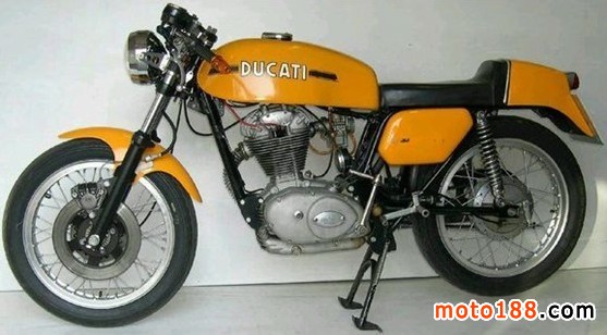 350desmo 生產年份1970-1974 引擎為單缸風冷四沖程SOHC;排量340;壓縮比10.0:1;最大馬力34hp8500rpm;5檔位;前剎車單282毫米盤式;后剎車160毫米鼓式;整車質量148公斤;油箱13升
