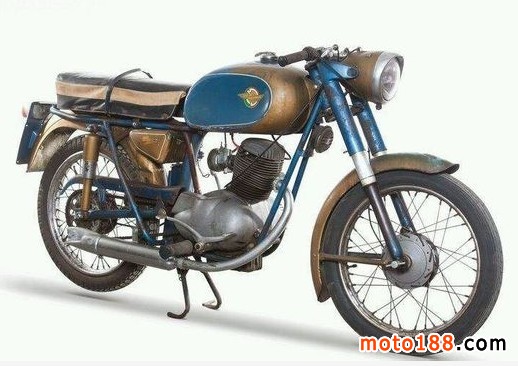 125Aurea 生產(chǎn)年份1958-1962引擎為單缸風(fēng)冷四沖程;排量124.7;壓縮比6.8:1;最大馬力6.8hp6500rpm;4檔位;整車(chē)質(zhì)量103.3公斤;油箱15升