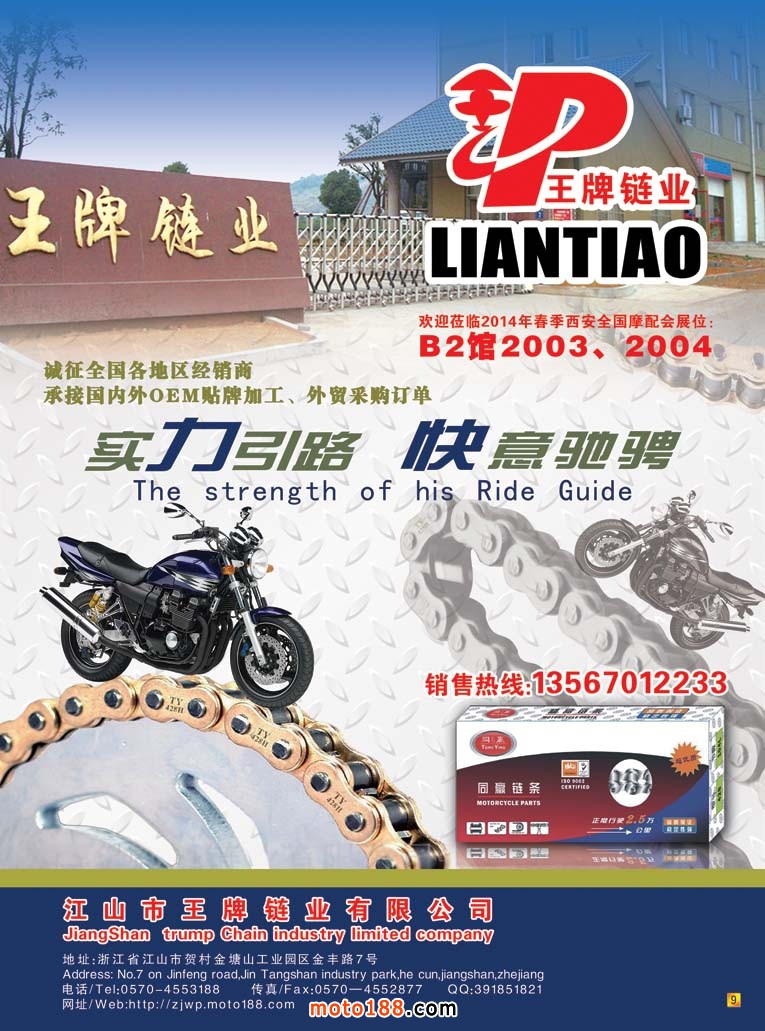 除了《西北市場(chǎng)指南》在會(huì)上投放,還有《會(huì)刊》由大會(huì)組委會(huì)分發(fā)給所有參會(huì)人員和企業(yè),我們的四月期全彩雜志以及第七期《摩托車與配件外貿(mào)報(bào)》。我們的展位在1142,歡迎在會(huì)上領(lǐng)取,指南需要名片交換,其余隨到隨取。