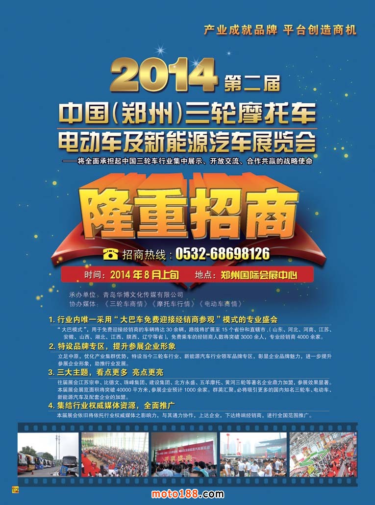 內112 2014第二屆中國(鄭州)三輪摩托車、電動車及新能源汽車展覽會