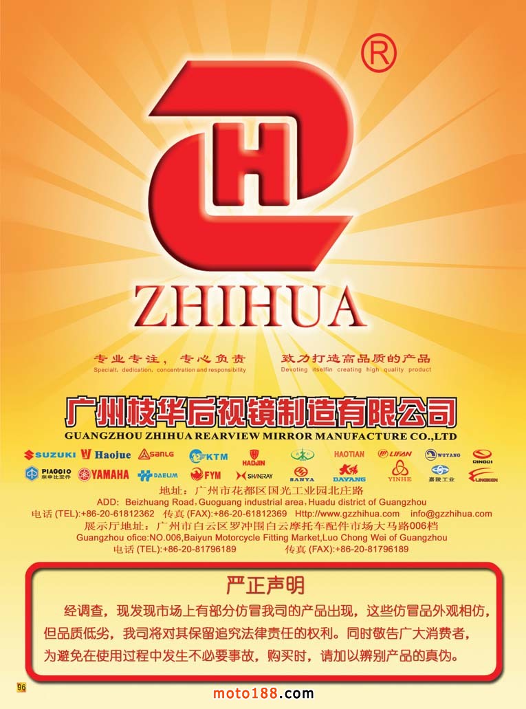 今年下半年我們將根據全摩會的地址變動而變動,下半年我們出版兩本書籍——《華南(廣東、海南)市場指南》、第十二次《中國摩托車配件生產業大全》升級版。廣州是中國摩托車配件的出口窗口,《華南版》廣州部分內容繼續用中英文雙語出版。