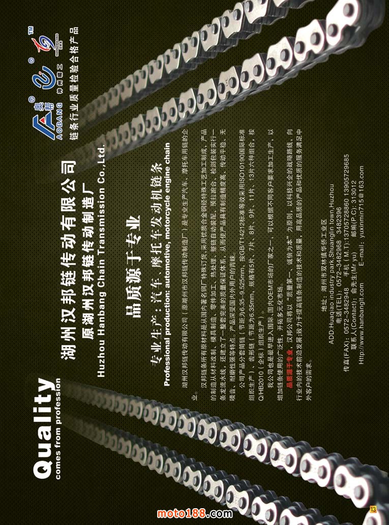 今年我們的雜志還涉及了三輪摩托車、電動摩托車和小型通機三個關連行業,在我們m.bzjdz.cn網站上鏈接了三輪摩托車:sl .moto189com;電動摩托車dd .moto189.com;小型通機tj .moto189.com。前邊兩個字母分別是前兩個字的聲母很容易記住,大家有空可以去瀏覽。今年下半年我們將加大力量做好這三個網站,再往里面裝填更多內容,爭取用一到二年時間,像我們 m.bzjdz.cn一樣成為行業的大型網站。
