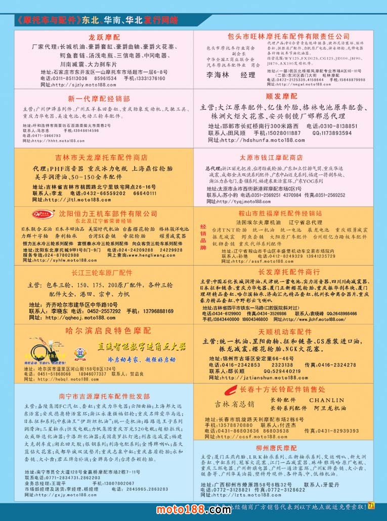 全摩會(huì)后,我們的工作是每月出一本雜志,同時(shí)編新版《華南市場(chǎng)指南》、第十二次《中國(guó)摩托車配件生產(chǎn)企業(yè)大全》升級(jí)版,在十一月份廣州會(huì)議上首發(fā)這兩本書。下半年廣州再見(jiàn)!