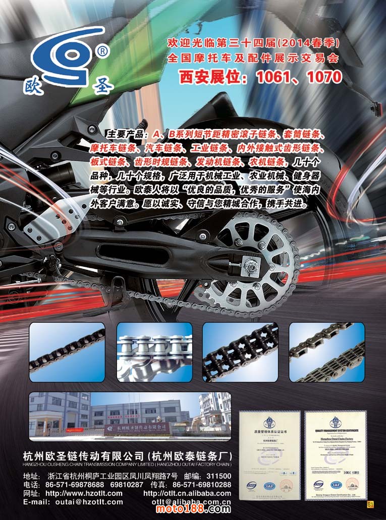 今年我們的雜志還涉及了三輪摩托車、電動摩托車和小型通機三個關連行業,在我們m.bzjdz.cn網站上鏈接了三輪摩托車:sl .moto189com;電動摩托車dd .moto189.com;小型通機tj .moto189.com。前邊兩個字母分別是前兩個字的聲母很容易記住,大家有空可以去瀏覽。今年下半年我們將加大力量做好這三個網站,再往里面裝填更多內容,爭取用一到二年時間,像我們 m.bzjdz.cn一樣成為行業的大型網站。