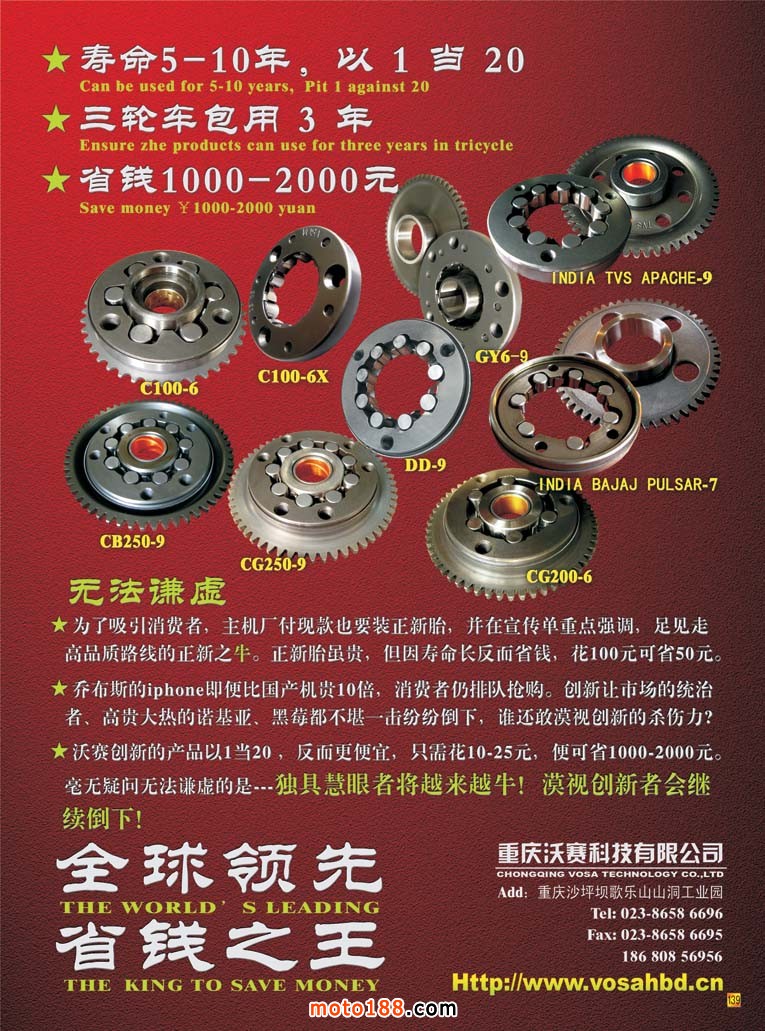 從去年年底,我們的雜志進行了形式上改變和內(nèi)容上的改變。從摩托車配件引伸到電動車、三輪車和小型通機,這是根據(jù)目前摩托車生產(chǎn)廠家和市場的變化而作的調(diào)整。這些工作實際是從去年11月份開始,到現(xiàn)在正好是半年。經(jīng)過改變后除了面目一新外,更是在技術(shù)普及和產(chǎn)業(yè)引伸方面下了功夫,我們的努力在上半年已經(jīng)得到部分的映證。今年我們制作的雜志、會刊、指南在廣告數(shù)量上都有一個新的突破,一舉扭轉(zhuǎn)了去年下半年的下滑勢頭。尤其今年第四期雜志,我們的后彩的廣告價格對于只做會期的企業(yè)進行了上調(diào),廣告量不僅沒有減少,反而有所增加,在會期我們向同仁展示我們的勞動成果時,大家一致認為我們工作實在。