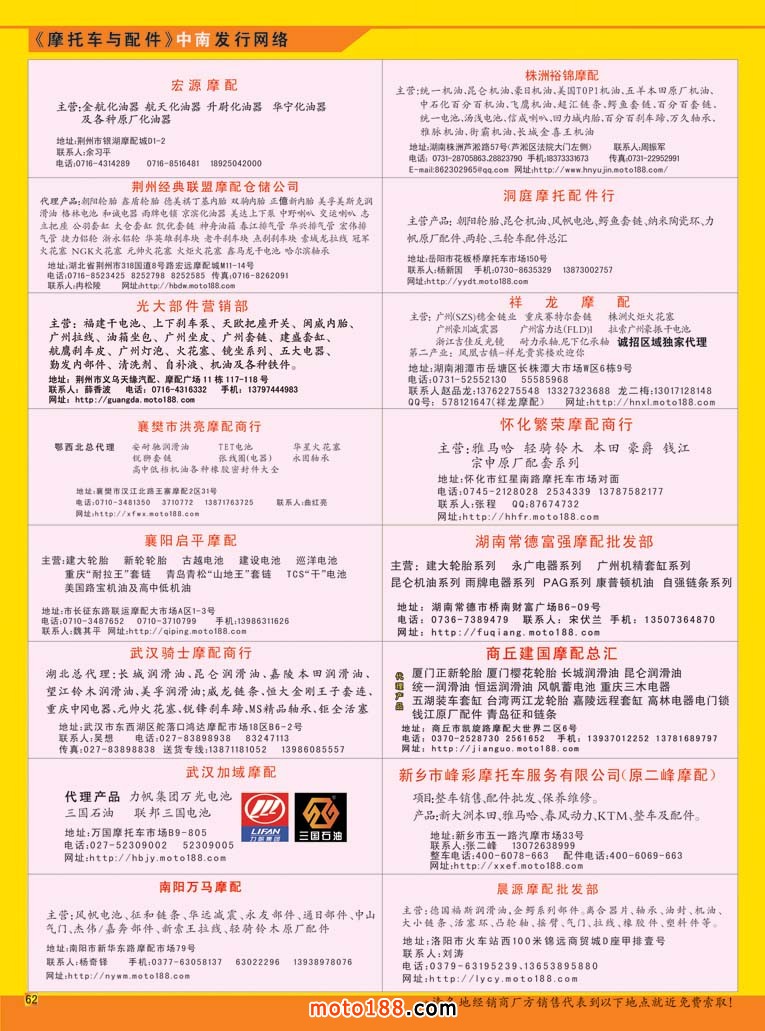 “沉舟側畔千帆過,病樹前頭萬木春”,半年的改版給我們帶來了良好的轉變,但我們不能固步自封,滿足現狀。會后我們就全行業形勢作了一個冷靜地思考,我們從五月份以后,對我們雜志再作一些微調:在做好摩配信息服務的同時,加大向電動車及新能源產業進軍的步伐;這次刊頭作了新的設計,突出了電動車產業,電動車涉及電動二輪、三輪、四輪;摩托車延伸向小型通機及三輪摩托車。每期我們在內容上區分各個主題,摩托車配件、電動車及配件、三輪和通機,版面比例為6422。這期我們精選了其它三個行業的信息,并用專題形式報道。今年六月中旬我們還將參加常州舉辦的電動車三輪車會議,八月上旬參加在鄭州舉辦的三輪車行業會議。在我們江、浙、滬長三角地區電動車產品既是主市場也是主產區,我們要充分利用這地域優勢做深做透。我們已經著手改版我們專業的電動車網站, www.moto189.com。通過一段時間的努力,將它做成m.bzjdz.cn一樣的行業大型網站;同時我們先天的發行網絡優勢,可以通過這個網絡發行到各省會城市市場,因為這些市場基本上是電動車和摩托車配件混生的;在江浙滬地區,完成主要廠家的數據庫整理和完善并逐步發行到位。我想,通過一年的努力,我們在這些行業也會成為有影響力的媒體,我們有信心做好這項工作。在目前低迷的市場狀況下,我們增加了開拓市場的人員,將這些工作做實做透;同時為了我們的雜志能發行到這些新行業企業的手中,我們已經增加了三分之一的印量。以后版本的《市場指南》我們也會將電動車企業一并收錄進來,明年的春天就可以見證至我們的努力成果。