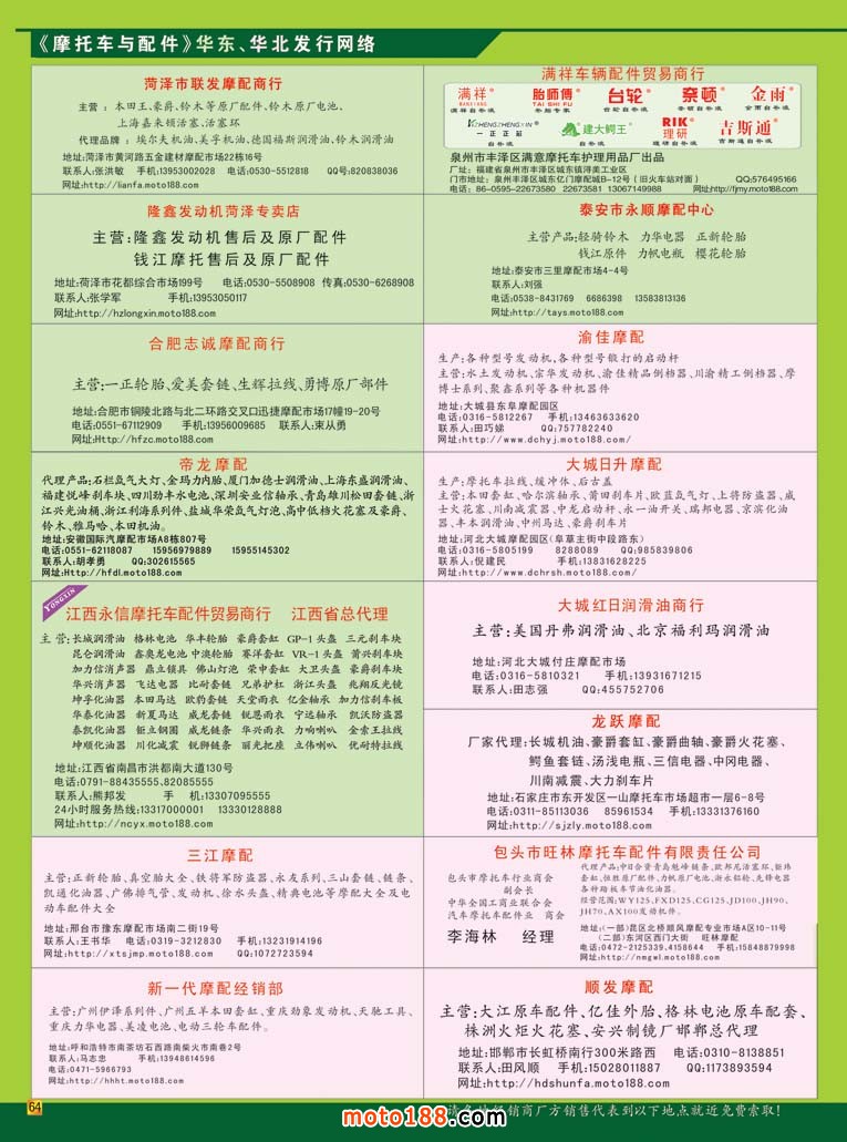 “沉舟側畔千帆過,病樹前頭萬木春”,半年的改版給我們帶來了良好的轉變,但我們不能固步自封,滿足現狀。會后我們就全行業形勢作了一個冷靜地思考,我們從五月份以后,對我們雜志再作一些微調:在做好摩配信息服務的同時,加大向電動車及新能源產業進軍的步伐;這次刊頭作了新的設計,突出了電動車產業,電動車涉及電動二輪、三輪、四輪;摩托車延伸向小型通機及三輪摩托車。每期我們在內容上區分各個主題,摩托車配件、電動車及配件、三輪和通機,版面比例為6422。這期我們精選了其它三個行業的信息,并用專題形式報道。今年六月中旬我們還將參加常州舉辦的電動車三輪車會議,八月上旬參加在鄭州舉辦的三輪車行業會議。在我們江、浙、滬長三角地區電動車產品既是主市場也是主產區,我們要充分利用這地域優勢做深做透。我們已經著手改版我們專業的電動車網站, www.moto189.com。通過一段時間的努力,將它做成m.bzjdz.cn一樣的行業大型網站;同時我們先天的發行網絡優勢,可以通過這個網絡發行到各省會城市市場,因為這些市場基本上是電動車和摩托車配件混生的;在江浙滬地區,完成主要廠家的數據庫整理和完善并逐步發行到位。我想,通過一年的努力,我們在這些行業也會成為有影響力的媒體,我們有信心做好這項工作。在目前低迷的市場狀況下,我們增加了開拓市場的人員,將這些工作做實做透;同時為了我們的雜志能發行到這些新行業企業的手中,我們已經增加了三分之一的印量。以后版本的《市場指南》我們也會將電動車企業一并收錄進來,明年的春天就可以見證至我們的努力成果。