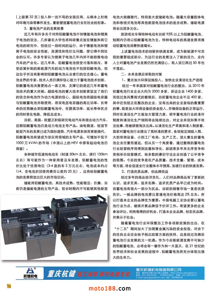 這一期是電池的專題,是摩托車和電動車都必須要用的重要部件。我們從龐雜的資料中精選了十四頁內(nèi)容,其中有一篇是由企業(yè)提供的稿件。我們歡迎企業(yè)能踴躍投稿,將你們的技術(shù)和經(jīng)驗與行業(yè)共同分享,提升行業(yè)整體素質(zhì),同時也可以通過我們這個平臺來提升企業(yè)的知譽度。