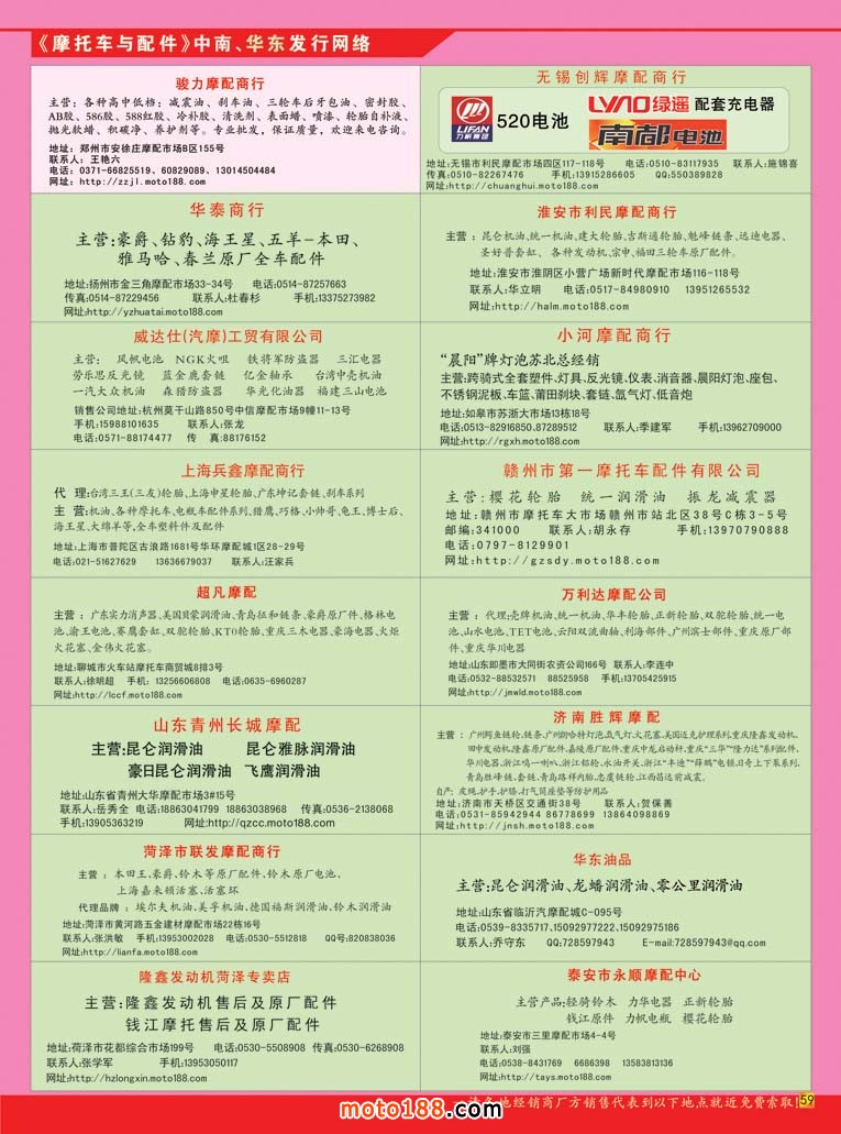 《摩托車與配件》經(jīng)過十多年發(fā)展和企業(yè)一起成熟,但并沒有變老,永遠保持與時俱進的青春活力,部分市場在變,我們的意志和恒心不變。我們根據(jù)這兩個大區(qū)的變化,也給雜志進行了一次新的定位,配件行業(yè)是我們的主戰(zhàn)場,我們始終在配件行業(yè)耕耘。盡管電動車的配件沒有摩托車的多和廣,但我們已經(jīng)采取措施在許多市場里將電動車配件經(jīng)營企業(yè)也納入到我們的送書計劃里。在以后出的《指南》類書籍里,在也會將市場里從事電動車配件批發(fā)的選錄進來。“問渠那得清如許?唯有源頭活水來”。這是一個恒久的市場,卻又是時時在變化的市場,尤如鐵打的營盤流水的兵,市場是鐵打,里面經(jīng)營的企業(yè)就是流水,只有流動的水才是活水。