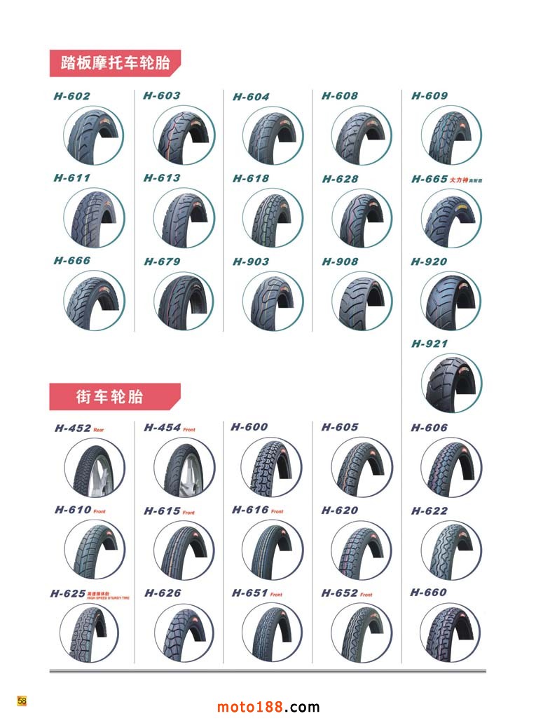 內58 摩托車、電動車輪胎型號