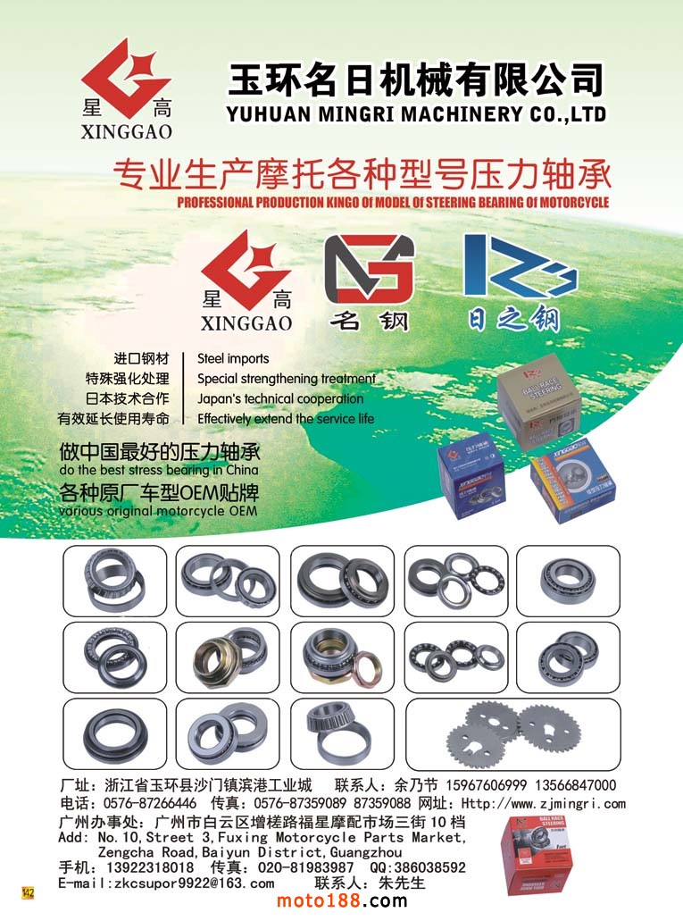 全摩會還有2個多月就在廣州召開了,這次會上我們將奉獻給大家的是第12次升級的《中國摩托車配件生產企業大全》在這本書中。我們新增了目錄銷售排名前10-20名的摩托車整車生產企業,二輪電動車生產企業、燃油和電動三輪生產企業的名錄,方便大家在增加經營的同時,有所選擇和參考。《華南市場指南》含廣東和海南兩省市場經銷商戶的資料,其中的廣州白云區羅沖圍一帶的市場是用中英文雙語編排,方便外商的閱讀;其余例行的十一期雜志和外貿報紙;另外還有部分華東和西北地區的新的市場指南(已經在南京和西安會議首發)。如果有興趣從事新能源汽車業務的企業也可拿到《新能源車》雜志。這是我們新出的雜志,具體可去moto189網站上瀏覽到全部的內容,在此不多贅述。記住廣州再見,帶上你的名片到1075展位領書去!