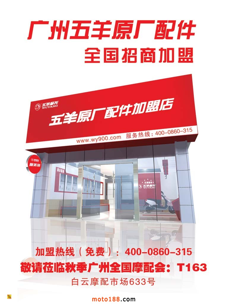全摩會還有2個多月就在廣州召開了,這次會上我們將奉獻給大家的是第12次升級的《中國摩托車配件生產企業大全》在這本書中。我們新增了目錄銷售排名前10-20名的摩托車整車生產企業,二輪電動車生產企業、燃油和電動三輪生產企業的名錄,方便大家在增加經營的同時,有所選擇和參考。《華南市場指南》含廣東和海南兩省市場經銷商戶的資料,其中的廣州白云區羅沖圍一帶的市場是用中英文雙語編排,方便外商的閱讀;其余例行的十一期雜志和外貿報紙;另外還有部分華東和西北地區的新的市場指南(已經在南京和西安會議首發)。如果有興趣從事新能源汽車業務的企業也可拿到《新能源車》雜志。這是我們新出的雜志,具體可去moto189網站上瀏覽到全部的內容,在此不多贅述。記住廣州再見,帶上你的名片到1075展位領書去!
