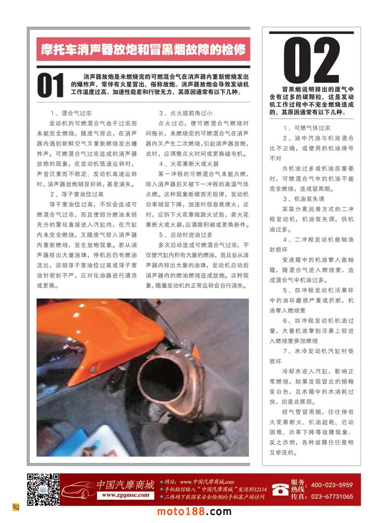 內40 摩托車消聲器放炮和冒黑煙故障的檢修