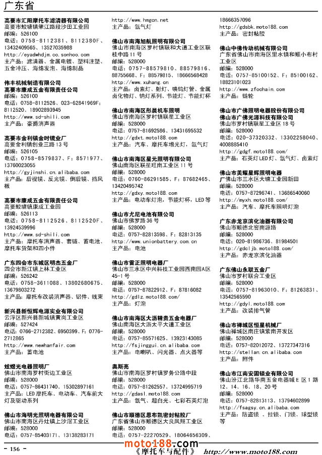 這兩年行業調整力度非常大,為了確保我們提供的信息準確性,我們本著寧缺毋濫的原則,不去圖虛的數量。目前摩托車與配件行業的不少經銷商是跨行業經營的,所以我們在本書中增加了部分摩托車整車廠、電動車生產廠、機動三輪車制造廠。所選的這些企業都是這個行業具有影響力的品牌企業,是為了大家在使用這本書時,獲取相關的延伸產業更多的實用信息。