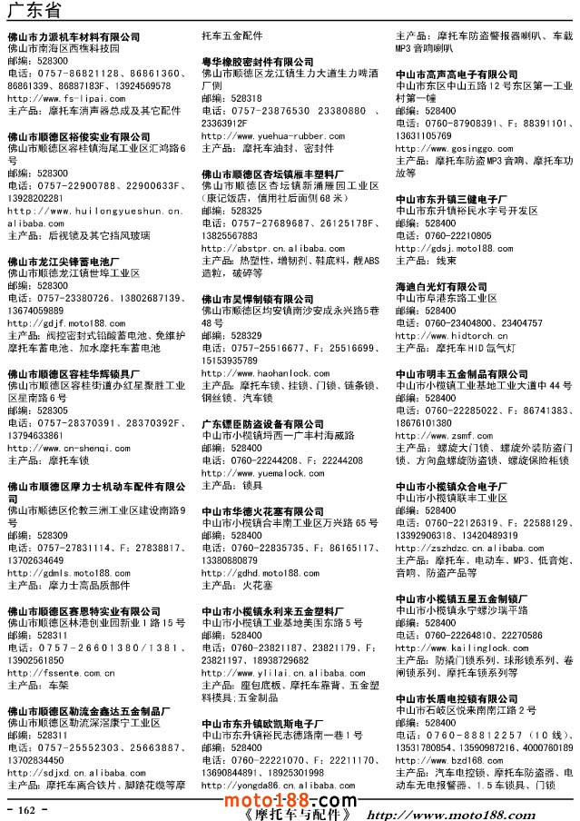 2015年升級(jí)版摩托車(chē)配件生產(chǎn)企業(yè)大全對(duì)13版進(jìn)行了大力度的調(diào)整:刪除了2013年之前銷(xiāo)聲匿跡的單位,盡管有的電話(huà)是可以打通的,比如浙江和河北刪除的單位比較多。本次版本里的所有單位都是有具體出處和來(lái)歷的,而且是這兩年來(lái)經(jīng)營(yíng)比較活躍的單位。