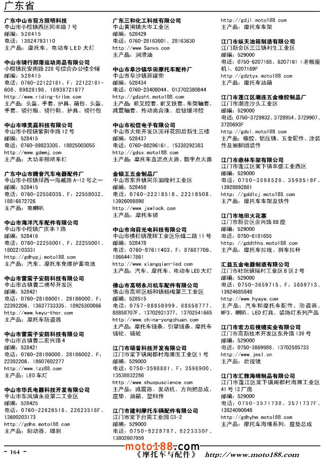 這兩年行業(yè)調(diào)整力度非常大,為了確保我們提供的信息準確性,我們本著寧缺毋濫的原則,不去圖虛的數(shù)量。目前摩托車與配件行業(yè)的不少經(jīng)銷商是跨行業(yè)經(jīng)營的,所以我們在本書中增加了部分摩托車整車廠、電動車生產(chǎn)廠、機動三輪車制造廠。所選的這些企業(yè)都是這個行業(yè)具有影響力的品牌企業(yè),是為了大家在使用這本書時,獲取相關的延伸產(chǎn)業(yè)更多的實用信息。