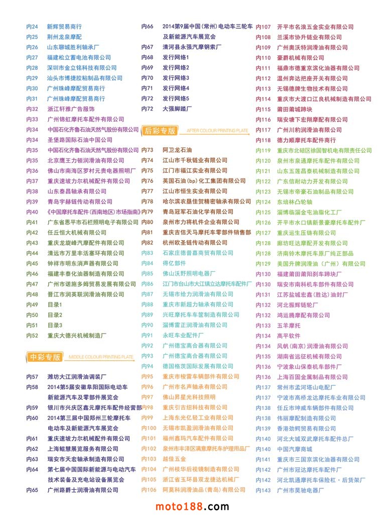 新版《中國摩托車配件市場指南·華南版》首發,廣州地區用中英文雙語出版,為外商使用此書提供便利。明年上半年全摩會在重慶召開,新版《中國摩托車市場指南·川渝版》廣告征集工作也已經開展,此書將在明年