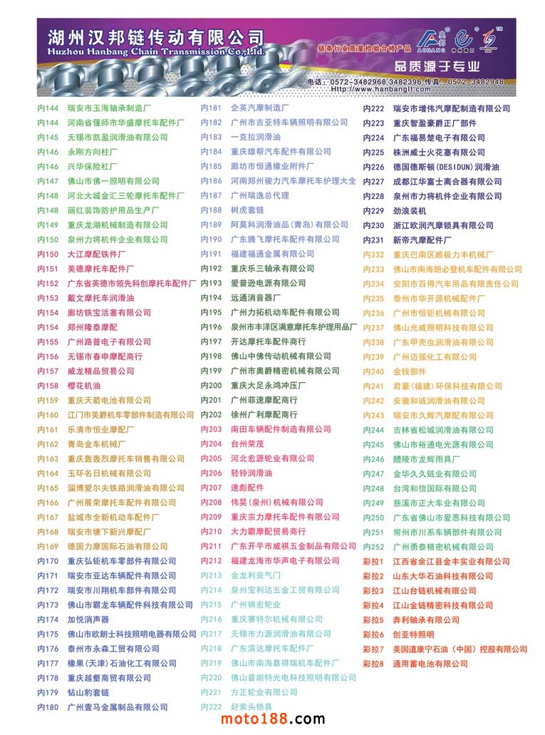 新版《中國摩托車配件市場指南·華南版》首發,廣州地區用中英文雙語出版,為外商使用此書提供便利。明年上半年全摩會在重慶召開,新版《中國摩托車市場指南·川渝版》廣告征集工作也已經開展,此書將在明年