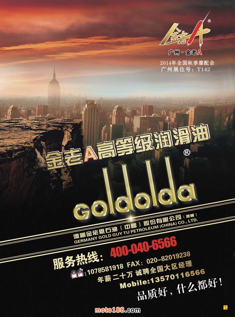 行業大型展會——第三十四屆秋季廣州全摩會會展期間,由于雜志廣告版面較多,原定出版的配件套缸專題和三輪車行業的相關信息專題移至下期出刊。