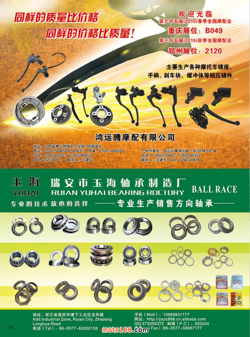 內124 鴻運騰摩配有限公司、瑞安市玉海軸承制造廠
