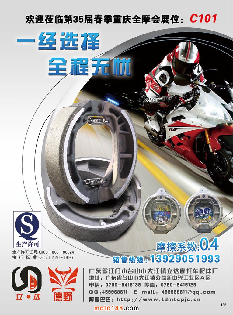 今年第四期雜志雖然在全國市場都有發(fā)行,一些不在市場的地區(qū)商戶除了通過www.moto188.com網(wǎng)站閱讀,也可到我們展位直接領(lǐng)取。由于本期雜志需要宣傳的企業(yè)較多,原來的摩托車及電動車行業(yè)的資訊的內(nèi)容,順延到下一期發(fā)布。