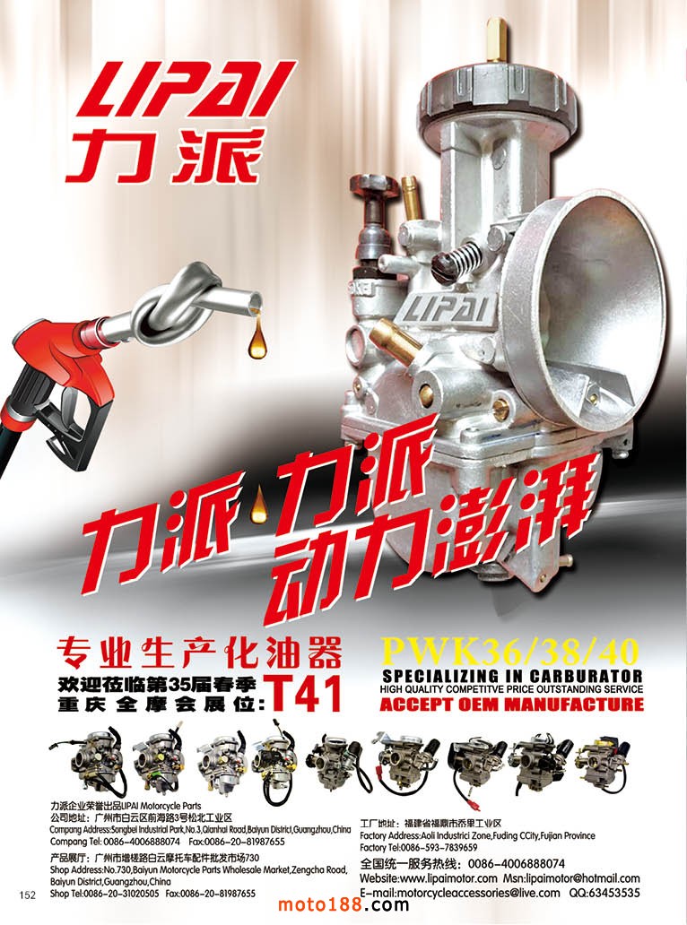 今年第四期雜志雖然在全國市場都有發行,一些不在市場的地區商戶除了通過www.moto188.com網站閱讀,也可到我們展位直接領取。由于本期雜志需要宣傳的企業較多,原來的摩托車及電動車行業的資訊的內容,順延到下一期發布。