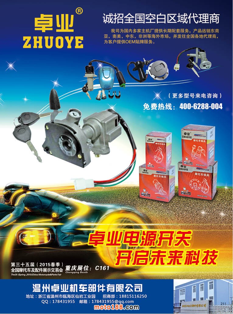 今年第四期雜志雖然在全國市場都有發行,一些不在市場的地區商戶除了通過www.moto188.com網站閱讀,也可到我們展位直接領取。由于本期雜志需要宣傳的企業較多,原來的摩托車及電動車行業的資訊的內容,順延到下一期發布。